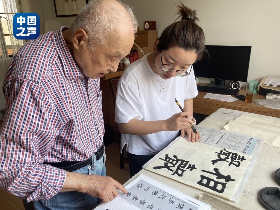 陳真與周爺爺一起練習(xí)書(shū)法