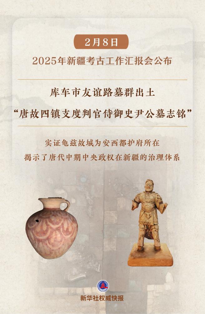 2月8日在京舉行的2025年新疆考古工作匯報會上,公布了庫車市友誼路墓群等“實(shí)證歷代中央政權(quán)有效管轄治理新疆”考古新發(fā)現(xiàn)。