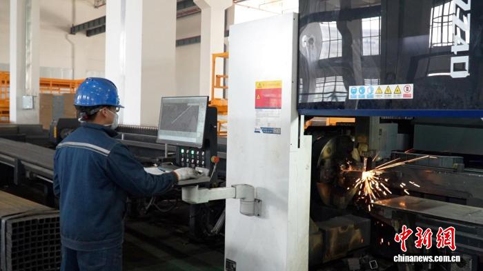 車間里,智能化自動激光切割機精準(zhǔn)作業(yè),僅用20分鐘就完成了一塊10毫米厚、2平方米鋼材的鉆孔工序,加工效率是傳統(tǒng)人工操作的10倍。