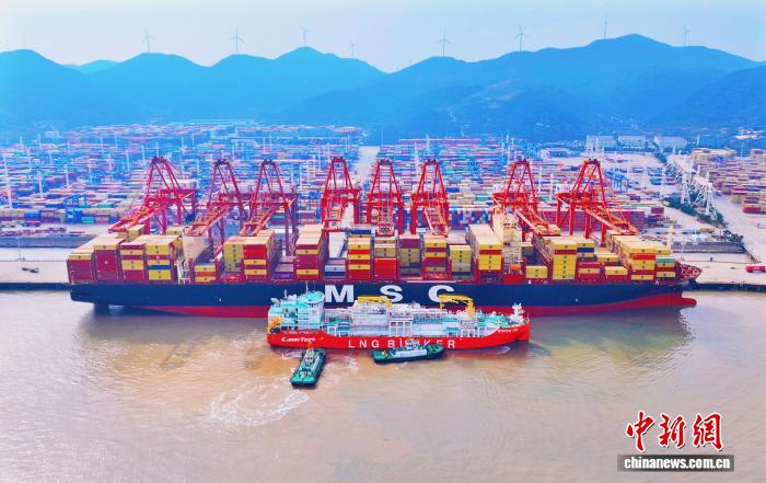 中新網(wǎng)寧波2月13日電 (張斌 駱澤明)13日,浙江寧波穿山港區(qū)的加注船“海洋石油302”輪完成對(duì)“史黛絲”輪的保稅LNG燃料加注,該船此前已在梅山港區(qū)為“布魯塞爾快航”輪加注,單次航次完成雙港區(qū)雙船加注,這標(biāo)志著浙江自貿(mào)試驗(yàn)區(qū)保稅LNG燃料“一船多供”模式在寧波港區(qū)落地。