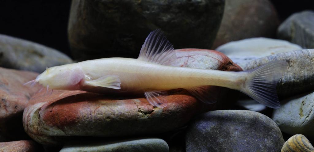 “納雍盲高原鰍”被發(fā)現(xiàn)于貴州省納雍縣張家灣鎮(zhèn)的一處地下溶洞中。作為典型的穴居魚類,該物種演化出鮮明的洞穴適應(yīng)性特征:個體體形偏小,鱗片已完全退化消失,身體呈透明淡粉色;眼睛高度退化,部分個體僅殘留細小的黑色眼點;同時,其附肢適度延長、感覺系統(tǒng)發(fā)達,以此適應(yīng)黑暗、封閉的地下環(huán)境。通過形態(tài)學(xué)對比與分子生物學(xué)檢測證實,它被確認為從未被記載的新種。
