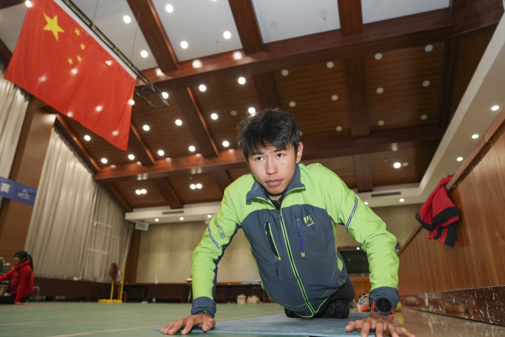 2026年2月19日,次旦玉珍在米蘭-科爾蒂納冬奧會(huì)滑雪登山女子個(gè)人短距離比賽前熱身。新華社記者 顏麟蘊(yùn) 攝