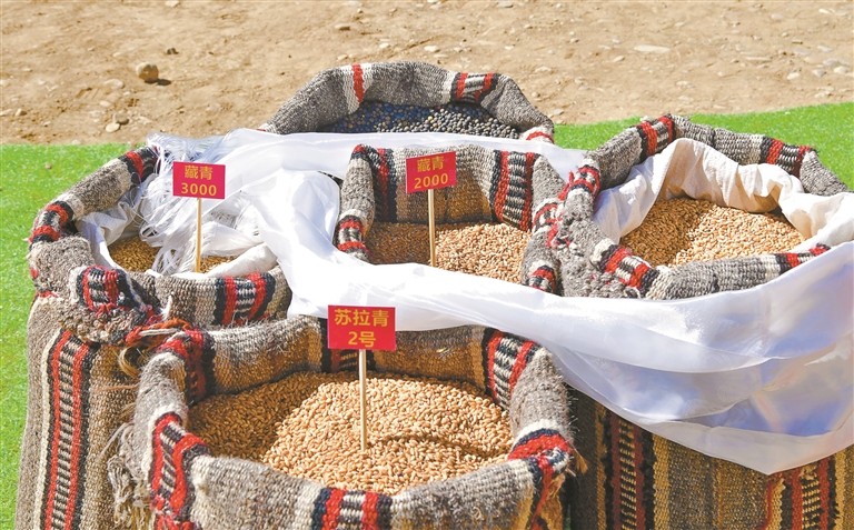 圖為墨竹工卡縣唐加鄉(xiāng)春耕春播儀式上展示的各類青稞種子。記者 索朗旺久 攝
