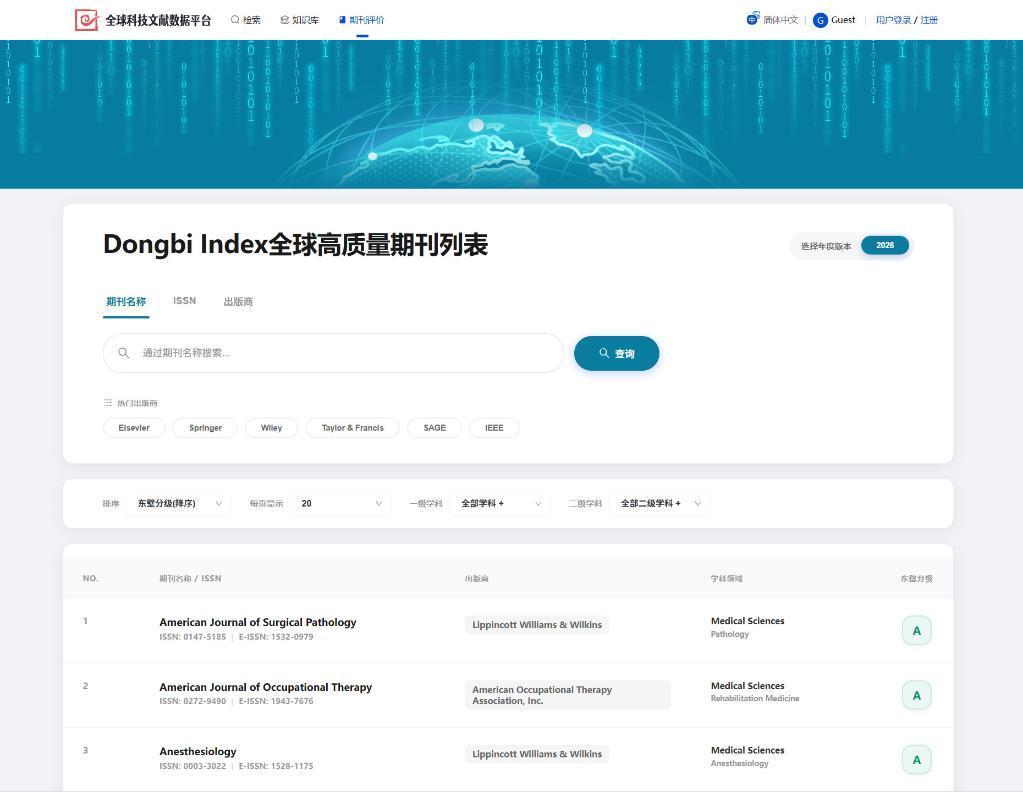 “東壁指數(shù)”全球高質(zhì)量期刊列表已上線,可免費(fèi)檢索下載。(網(wǎng)站截圖)