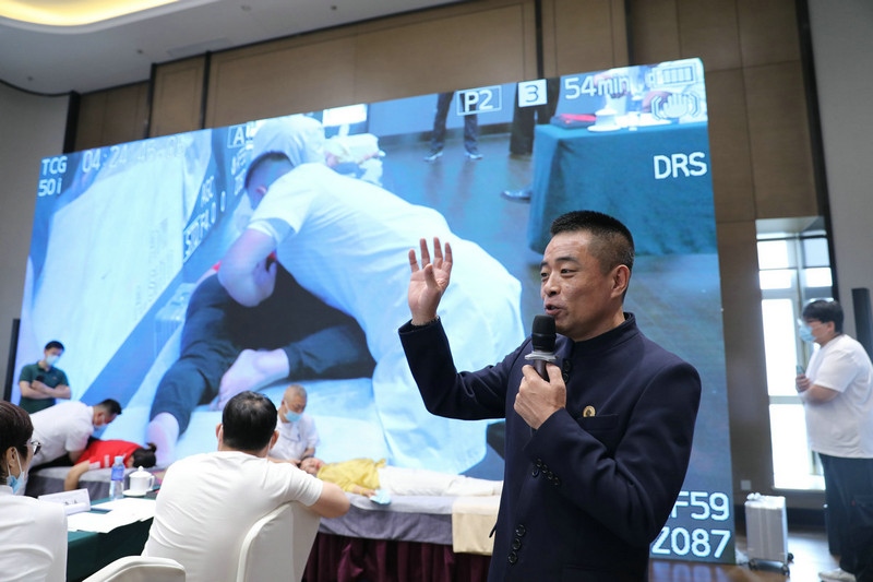 會上,御骨非物質文化遺產(chǎn)保護有限公司董事長、孫氏御骨術創(chuàng)始人孫亞臣介紹了發(fā)起技術操作規(guī)范編制的詳細情況。為了讓評審專家更加直觀的了解該技術,御骨老師們進行了現(xiàn)場實操,專家組給予了一致好評。