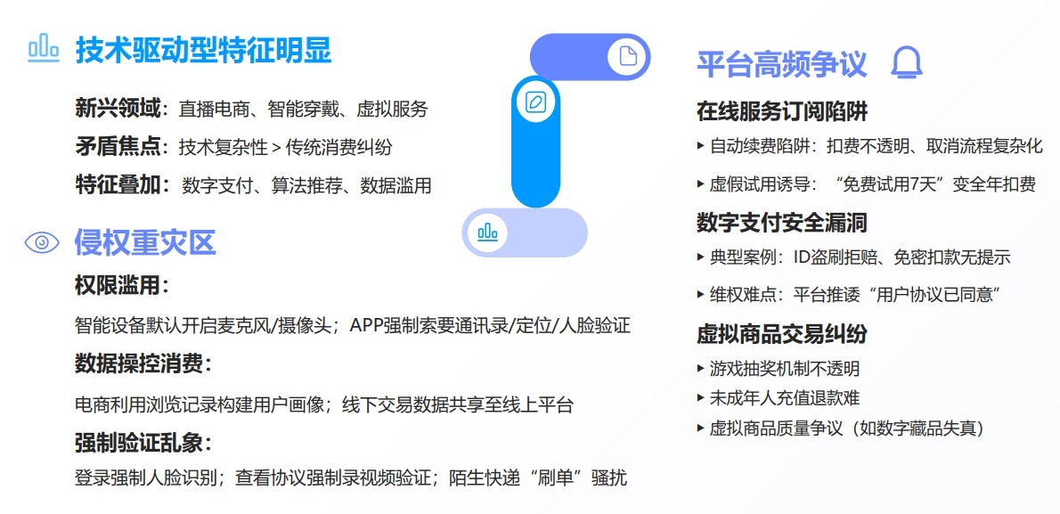 與此同時(shí),隨著直播電商、智能穿戴、虛擬服務(wù)等數(shù)字化消費(fèi)的爆發(fā)式增長(zhǎng),相關(guān)爭(zhēng)議也呈現(xiàn)上升趨勢(shì)。