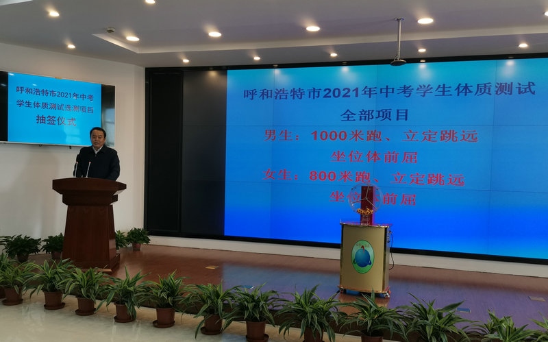 呼和浩特市2021年中考學生體質(zhì)測試必測試項目為:男生:1000米跑、立定跳遠;女生:800米跑、立定跳遠。其它選測項目由呼市招生考試管理中心組織,在公證處監(jiān)督下,學生代表、家長代表和部分初中學校領(lǐng)導參與下,通過隨機公開搖號,從擲實心球(男)、1分鐘仰臥起坐(女),一分鐘跳繩(男女同項),坐位體前屈(男女同項)三項中確定測試項目,定為2021年選測項目,并予以公布。