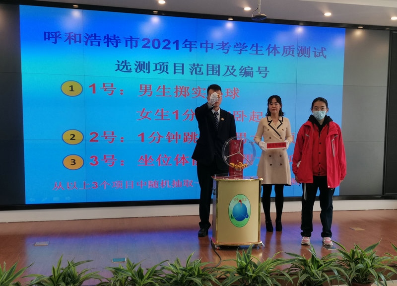 經(jīng)過公開搖號,公證員宣讀公證詞,最終確定了2021年呼和浩特市中考學生體質(zhì)測試選測項目為坐位體前屈(男女同項)。