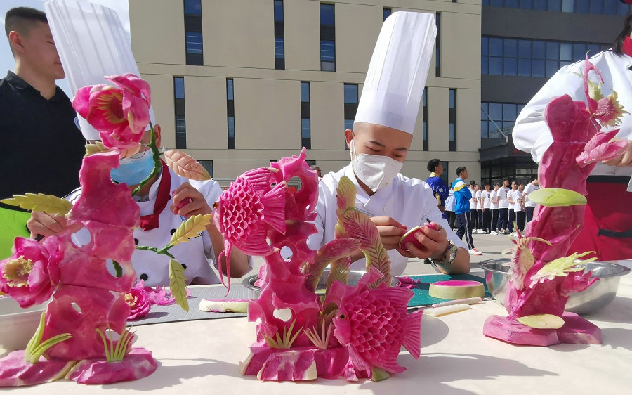 啟動(dòng)儀式在學(xué)校舞獅隊(duì)的表演和烹飪專(zhuān)業(yè)學(xué)生的技能展示中拉開(kāi)迎賓序幕,在雄壯的國(guó)歌聲中正式開(kāi)啟了2021年呼和浩特市職業(yè)教育活動(dòng)周。