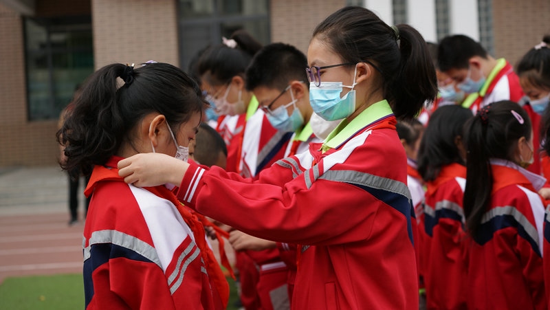 新城區(qū)北垣小學(xué)舉行一年級(jí)新生分批入隊(duì)儀式。新隊(duì)員們戴上紅領(lǐng)巾,走在陽(yáng)光下,熠熠生輝。學(xué)校利用好“六一”這個(gè)重要時(shí)間節(jié)點(diǎn),開展入隊(duì)儀式、“紅領(lǐng)巾獎(jiǎng)?wù)隆鳖C章儀式等,用好儀式教育,構(gòu)建階梯式成長(zhǎng)激勵(lì)體系,不斷增強(qiáng)少先隊(duì)員的光榮感。