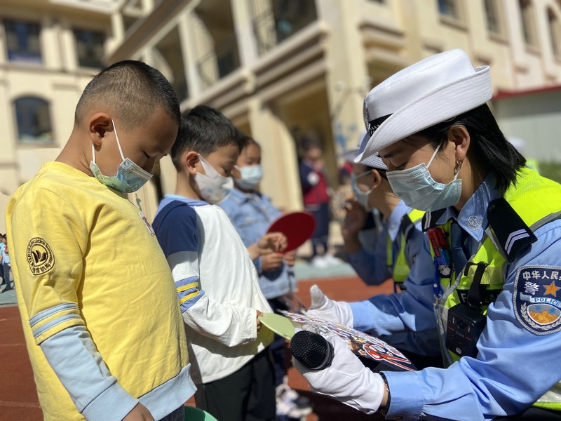 為進(jìn)一步向轄區(qū)內(nèi)小學(xué)生普及交通安全知識(shí),呼和浩特市公安局交通管理支隊(duì)賽罕大隊(duì)女警護(hù)學(xué)中隊(duì)民輔警走進(jìn)校園,開展“交通安全小課堂”的安全教育活動(dòng),通過(guò)PPT講解、播放交通事故案例、互動(dòng)問(wèn)答、戶外游戲等多種形式,為小朋友們送去了一份交通安全知識(shí)的”六一“禮物。