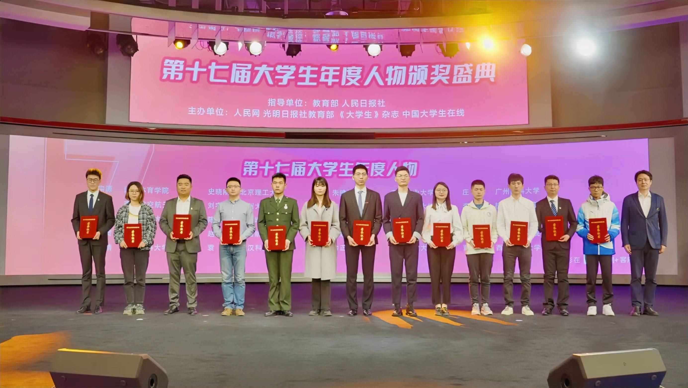 第十七屆“大學生年度人物”推選展示活動由教育部、人民日報社共同指導,人民網(wǎng)、光明日報社教育部、《大學生》雜志、中國大學生在線聯(lián)合主辦。去年8月活動啟動以來,共收到全國31個省、自治區(qū)、直轄市及新疆生產(chǎn)建設兵團推薦報名423人。經(jīng)過多輪評審,推選出10位最美大學生、20位大學生年度人物、30位大學生年度人物提名獎、109 位大學生年度人物入圍獎。