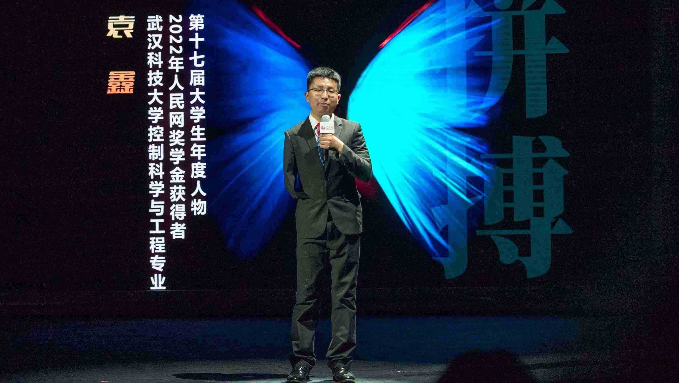 第十七屆大學生年度人物、2022年度人民網(wǎng)獎學金一等獎獲得者武漢科技大學控制科學與工程專業(yè)博士生袁鑫分享自己的故事。實習生韓華良 攝