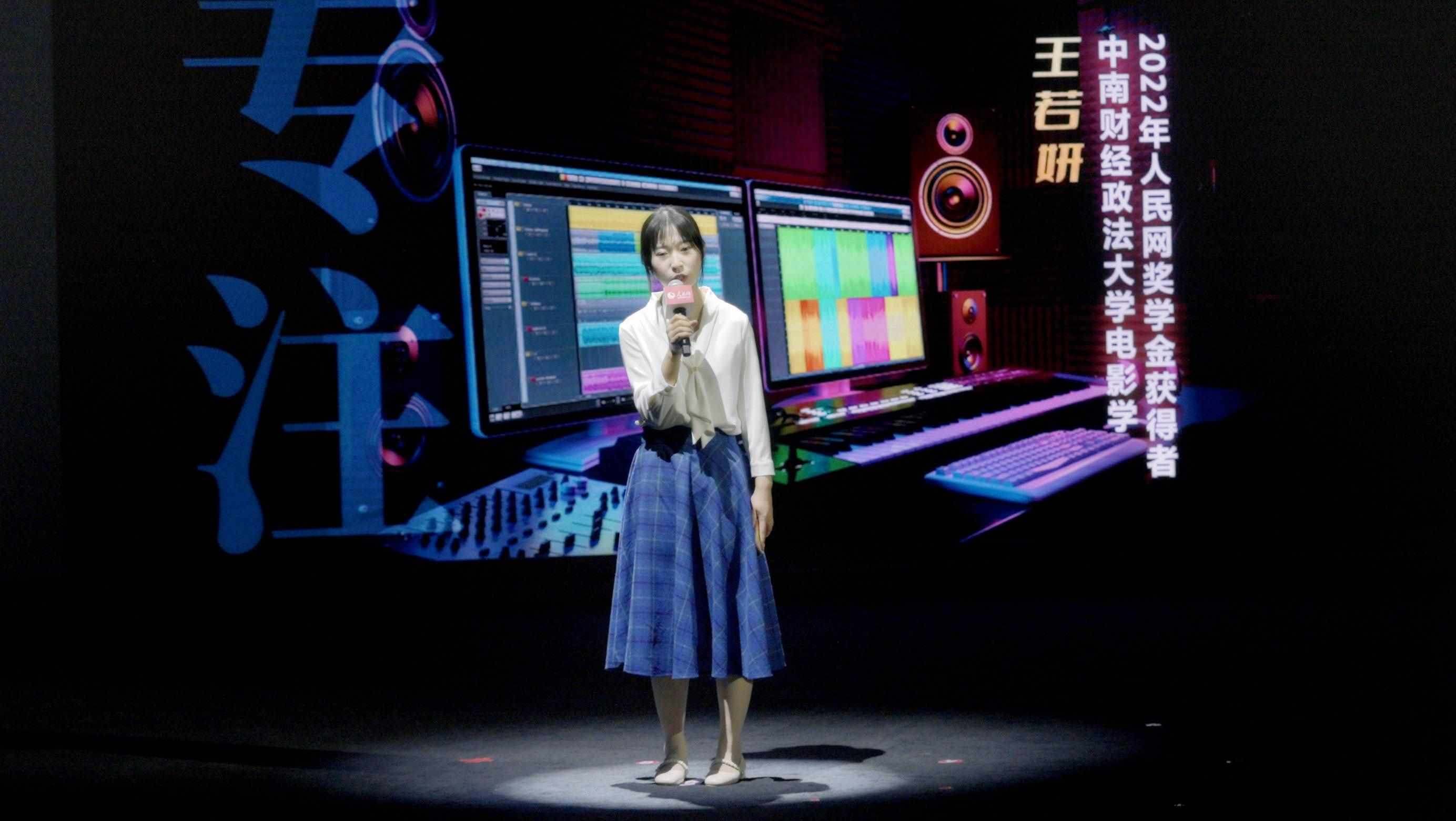 2022年人民網(wǎng)獎學金獲得者、中南財經(jīng)政法大學電影學專業(yè)學生王若妍分享自己的故事。實習生韓華良 攝