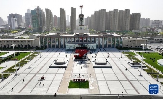 這是4月29日拍攝的石家莊解放紀(jì)念館(無(wú)人機(jī)照片)。