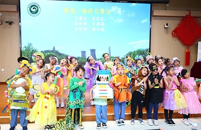 此外,九中教育集團(tuán)所屬的首鋼幼教金頂街園等幼兒園的孩子們上演了精彩的“幼兒生態(tài)保護(hù)時裝秀”。他們身穿利用生活廢棄物品精心制作成各種造型的服裝,巧妙傳遞出了“變廢為寶”的環(huán)保理念。歌謠表演《綠色石景山》也為孩子們上了一堂生動的爭做環(huán)保小衛(wèi)士、友愛相伴小動物的課程。