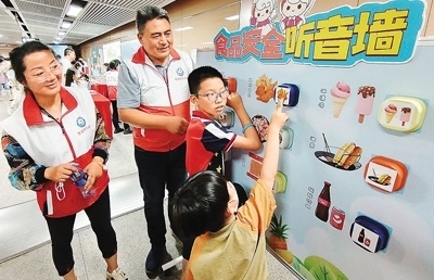 日前,福建省廈門市婦聯(lián)攜手相關(guān)部門舉辦“快樂(lè)‘六一’ 安全童行”2023年“六一”體驗(yàn)式生命教育趣味游園活動(dòng)。圖為小朋友們?cè)趨⒓邮称钒踩?tīng)音墻活動(dòng)。 徐 林?jǐn)z |