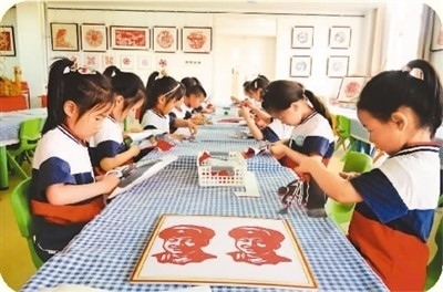 “六一”兒童節(jié)前夕,山東省日照市東港區(qū)秦樓街道中心幼兒園組織豐富多彩的教育活動(dòng),引導(dǎo)孩子們快樂(lè)成長(zhǎng)。圖為學(xué)生們?cè)趯W(xué)習(xí)剪紙技藝。 趙樹(shù)宴攝 |