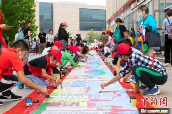 圖為天津市少年兒童百米長卷繪制活動現(xiàn)場。王在御 攝