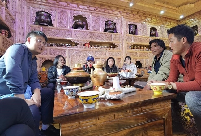 甘孜思政實(shí)踐團(tuán)走進(jìn)藏民家中訪談?wù){(diào)研。