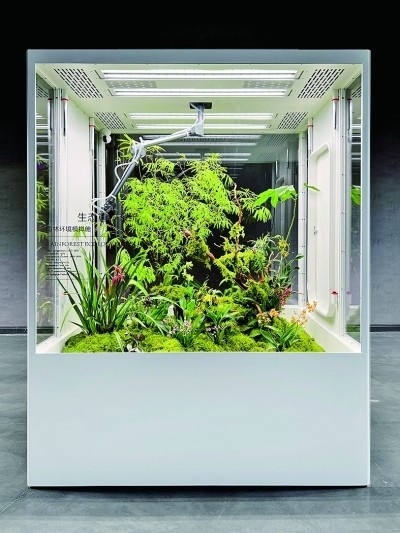 展廳一側(cè),三個(gè)立方體環(huán)境模擬艙并排放置,分別在近7立方米的空間內(nèi)模擬了雨林、海島、沙漠三種生態(tài)環(huán)境,引來(lái)許多觀眾圍觀?!霸诟邩橇至⒌亩际?,很多人都向往擁有一方屬于自己的自然天地。為人們?cè)谑覂?nèi)打造一片‘原始森林’便成了我們的使命?!逼放苿?chuàng)始人李軍介紹,設(shè)計(jì)過(guò)程中,團(tuán)隊(duì)遇到的一大的難點(diǎn)就是在保證室內(nèi)環(huán)境舒適度的同時(shí),讓各類(lèi)植物健康生長(zhǎng)?!巴ㄟ^(guò)設(shè)計(jì)師的努力,我們首次將人造太陽(yáng)光源、溫濕度控制、空氣流通、智能微噴等系統(tǒng)整合于室內(nèi)種植模擬環(huán)境中,實(shí)現(xiàn)了室內(nèi)種植智能化、自動(dòng)化、現(xiàn)代化?!崩钴姳硎?,做設(shè)計(jì)亦要遵循自然法則,“人與自然和諧共生”是團(tuán)隊(duì)始終不變的設(shè)計(jì)宗旨。