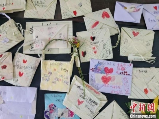 圖為孩子們給宮宇洋的信。受訪者供圖
