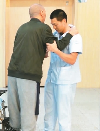 “比如在攙扶老陸進(jìn)行康復(fù)訓(xùn)練時(shí),我會(huì)說‘老陸,雄起’來鼓勵(lì)他。晚上睡前,我也會(huì)和他聊天,告訴他‘有任何需要我都會(huì)在身旁’?!焙喆蟾缯f。