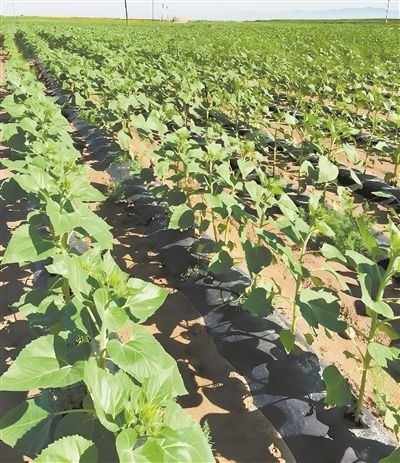 土壤經(jīng)中國農(nóng)業(yè)科學(xué)院鹽堿地改良創(chuàng)新團(tuán)隊(duì)改良后,種植的食葵長(zhǎng)勢(shì)良好。受訪者供圖