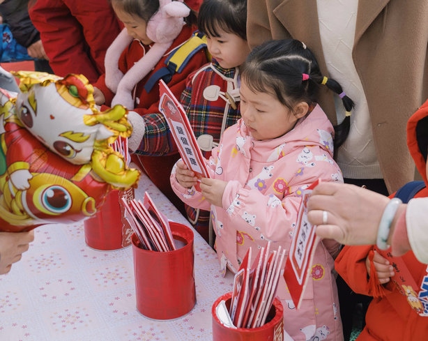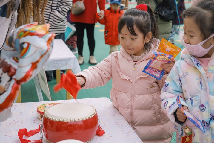 為歡迎小朋友回家,幼兒園精心布置,鯉魚跳龍門、福氣上上簽、朱砂啟智、擊鼓明智等。