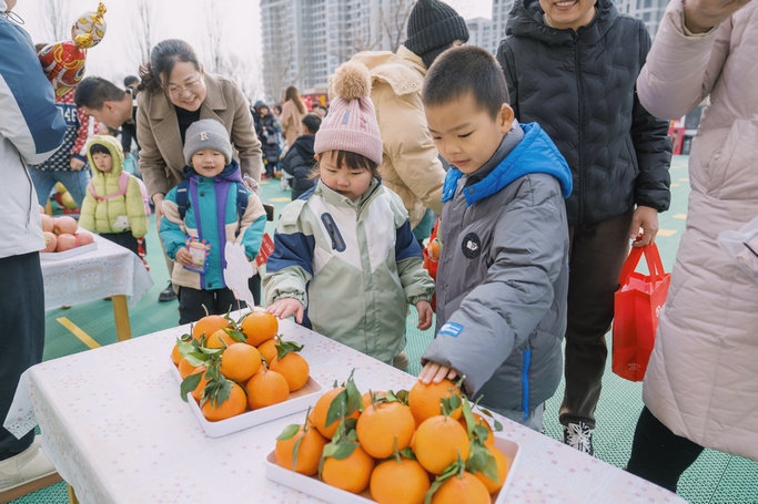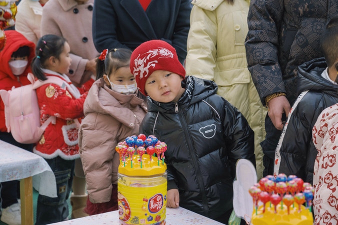 在老師的一聲聲祝福中,小朋友們興奮地摸著充滿寓意的蘋果、橙子、棒棒糖等。