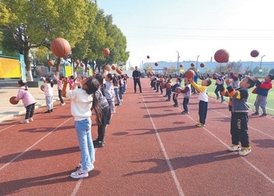 陶新明就在縣第五小學(xué)跟崗學(xué)習(xí)兩年,帶回了先進的教學(xué)模式和理念?!霸诮搪?lián)體支持下,我們校區(qū)目前已有兩名專職體育老師。我們在課后托管時間開設(shè)社團課,為有愛好和特長的學(xué)生系統(tǒng)地開設(shè)籃球、足球課,引導(dǎo)幫助他們?nèi)姘l(fā)展?!碧招旅髡f。