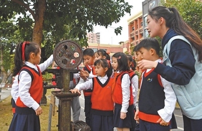 2022年3月,九龍坡區(qū)教委印發(fā)《關(guān)于推進中小學(xué)集團化辦學(xué)的意見》,謝家灣金茂小學(xué)成為謝家灣教育集團一體化辦學(xué)成員校。謝家灣金茂小學(xué)的前身是重慶建設(shè)工業(yè)(集團)有限公司子弟學(xué)校,約1/3的教師曾是工廠職工?!盎趯W(xué)校情況,我們強調(diào)培養(yǎng)學(xué)生養(yǎng)成熱愛勞動的習(xí)慣,形成陽光心態(tài)。”謝家灣金茂小學(xué)黨總支書記楊永財指著校園內(nèi)擺放的老舊機床說,“重慶建設(shè)工業(yè)(集團)有限公司發(fā)展歷史厚重,學(xué)校積極挖掘紅色資源,給孩子們講好革命歷史,上好思政課?!?/p>