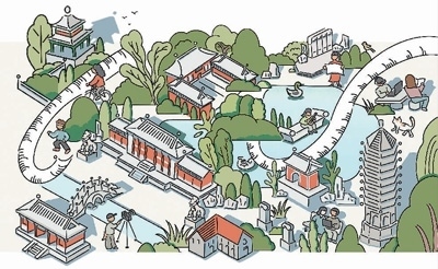 周 玨繪周玨畢業(yè)于北京大學考古文博學院,是一名職業(yè)插畫師,曾經參加過導師張劍葳副教授組織的燕園文物數字化工作坊。她用畫作描述了師生參與燕南園歷史地段景觀保護與展示項目的情景?!把鄨@曾是我學習生活過的地方,又是值得研究與保護的文化遺產。燕園不僅以塔、湖聞名,還有西校門、辦公樓、紅五樓、校景亭、花神廟和燕南園?!?/p>