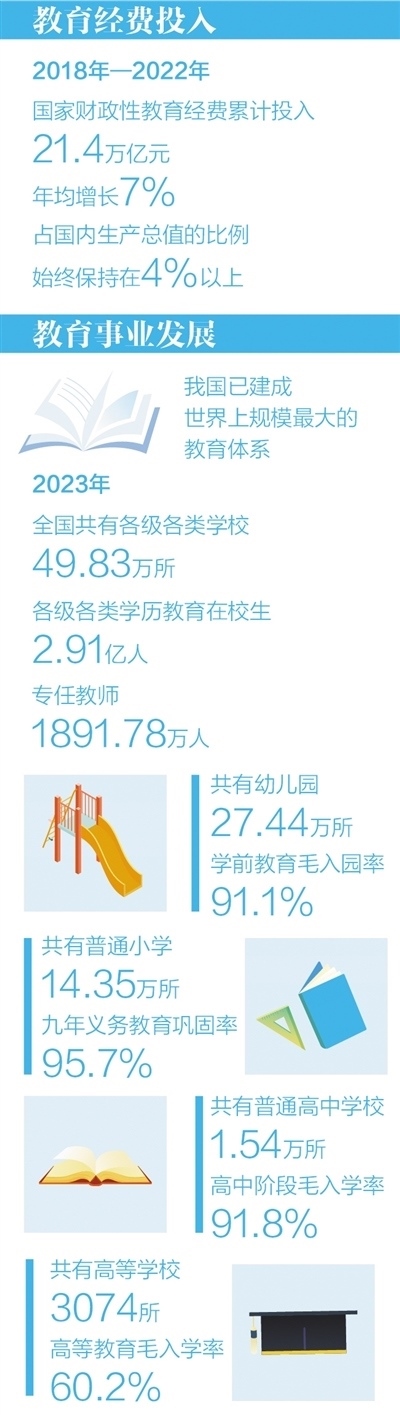 教育興則國家興,教育強(qiáng)則國家強(qiáng)。新時(shí)代以來,黨中央作出加快教育現(xiàn)代化、建設(shè)教育強(qiáng)國的重大決策,推動(dòng)新時(shí)代教育事業(yè)取得歷史性成就、發(fā)生格局性變化。我國已建成世界上規(guī)模最大的教育體系,教育現(xiàn)代化發(fā)展總體水平跨入世界中上國家行列。