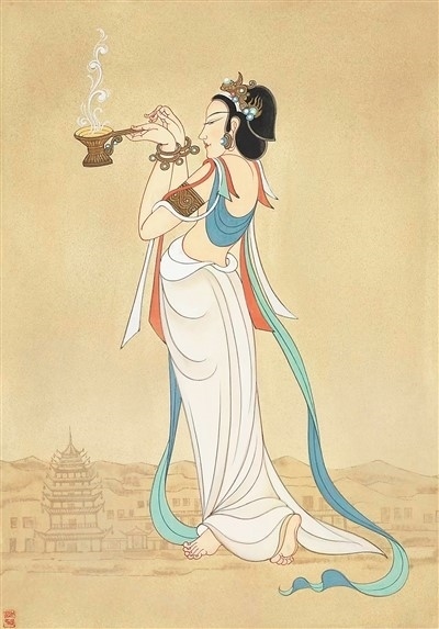 | 手持香爐的供養(yǎng)天女 初唐329窟常沙娜作品 |