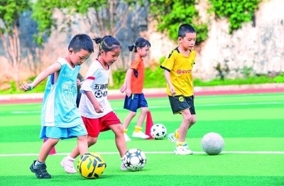 湖南永州一學(xué)校運(yùn)動場,孩子們參加足球訓(xùn)練。新華社發(fā)