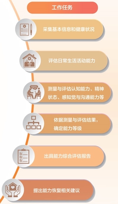 隨著老齡化進程加快,開展老年人能力評估,成為許多養(yǎng)老服務相關(guān)工作的一個基礎(chǔ)環(huán)節(jié)?!袄夏耆诵枰媪私庾约旱哪芰?,養(yǎng)老機構(gòu)根據(jù)能力評估制定照護方案,政府根據(jù)照護等級確定補助標準,推廣普及長期護理險以失能等級評估為依據(jù)……養(yǎng)老服務工作方方面面都需要對老年人進行能力評估。”盛思敏說。