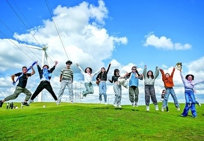 8月22日,參加第三十屆海峽兩岸大學(xué)生新聞營(yíng)的師生們?cè)趦?nèi)蒙古烏蘭察布市輝騰錫勒草原合影。新華社發(fā)