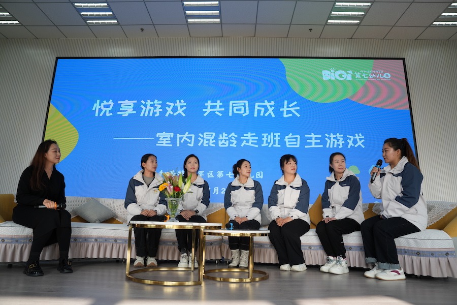 當(dāng)日,由西華師范大學(xué)、呼和浩特市教育教學(xué)研究中心舉辦的“四川省第三期卓越園長高級(jí)研修暨呼和浩特市幼兒園園長骨干教師主題培訓(xùn)”成員走進(jìn)賽罕區(qū)第七幼兒園進(jìn)行園所參觀以及教研活動(dòng)觀摩,并對(duì)室內(nèi)混齡走班自主游戲特色課程表現(xiàn)出極大的興趣。