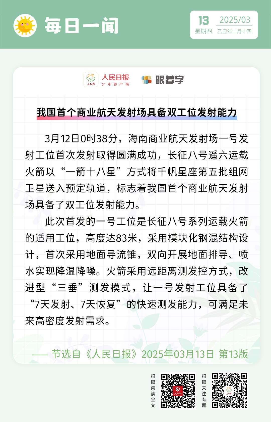 每日一聞丨我國(guó)首個(gè)商業(yè)航天發(fā)射場(chǎng)具備雙工位發(fā)射能力