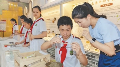圖為學(xué)生們?cè)谶M(jìn)行中醫(yī)藥研學(xué)。