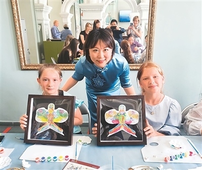 不久后的9月,“東方雅韻——中國文化藝術展”2.0版本及“天涯共此時”中秋文化體驗活動在西班牙馬德里中國文化中心舉辦。天津博物館首次將體驗工坊帶進馬德里社區(qū),當?shù)貎和跉g聲笑語中沉浸式感受中華傳統(tǒng)技藝,一位當?shù)嘏W⒌赜猛赜」ぞ邚涂虠盍嗄景婺戤?,她指尖起落間,寓意吉祥的“連年有余”圖案逐漸清晰。工坊結(jié)束后,大家拿著自己拓印的團扇、親手捏制的中秋兔子與老師合影,還放飛了自己動手著色的迷你風箏。