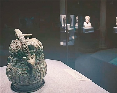 她的這番話讓我回想起開展當天的凌晨。我站在展廳中央,環(huán)顧四下,看著那些跨越山海而來的文物和我們院藏文物一起,在燈下泛著溫潤的光,像是散落在時間長河里的星辰。那一刻,我覺得自己是個幸運的拾星者,得以用展線作銀梭將它們串聯(lián)成新的星圖——這星圖里有雅典娜的榮光,也有西王母的“神性”;有陶繪酒罐的多彩,也有青銅酒器的厚重。不同文明的星光交匯于一方展廳間,文物雖不會說話,但它們的存在本身就是擲地有聲的宣言——文明的故事從來不是孤立的敘事,文明更從無高下之分,雖有山海之隔,仍可同頻共振。