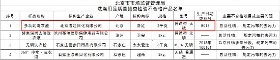 公告顯示,北京市市場監(jiān)督管理局2020年6月24日公示的洗滌用品質(zhì)量抽檢信息中,標稱生產(chǎn)企業(yè)“北京市洛娃日化有限公司”,標稱商標“洛娃”,規(guī)格“2千克”,型號“普通型無磷”,生產(chǎn)日期或批號“B013”的多功能洗衣液,不合格項目“總活性物,規(guī)定污布的去污力”。該產(chǎn)品被抽檢場所為“密云縣密云鎮(zhèn)億源來商店”,現(xiàn)“北京市洛娃日化有限公司”聲稱該產(chǎn)品為假冒其注冊商標及廠名、廠址的產(chǎn)品。