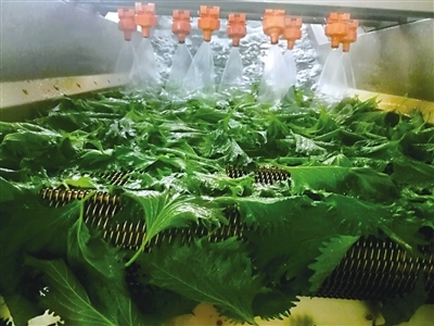 在紫蘇基地加工車間,20多名工人正在熱火朝天地忙碌著,采摘好的紫蘇葉在這里經(jīng)過清洗、精選、包裝等多道工序處理后,會按照不同品級進(jìn)行精細(xì)化捆扎分類,然后被送入冷庫進(jìn)行預(yù)冷,整個操作都是在無菌環(huán)境下進(jìn)行?!艾F(xiàn)在臨時工、長期工加一起有20多人,5年來,我們在七圪臺村、什不斜氣村、什拉烏素村等周邊培訓(xùn)了村民200人左右,他們每年農(nóng)閑時就會來基地打工,男工負(fù)責(zé)大棚管理、種植,女工負(fù)責(zé)采葉子、分葉子、包葉子?!卑合蛴浾呓榻B道。