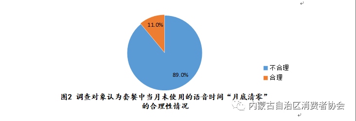 1.運(yùn)營(yíng)商提供的現(xiàn)有套餐及資費(fèi)政策不合理。30.3%的調(diào)查對(duì)象認(rèn)為套餐有額外增值業(yè)務(wù)產(chǎn)生,28.3%的調(diào)查對(duì)象認(rèn)為套餐整體資費(fèi)超出所需范圍,89%的調(diào)查對(duì)象表示套餐中當(dāng)月未使用的語(yǔ)音時(shí)間“月底清零”不合理,所有調(diào)查對(duì)象均表示三大通訊運(yùn)營(yíng)商沒(méi)有提供無(wú)固定月租收費(fèi)標(biāo)準(zhǔn)。