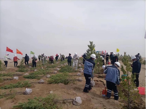 北疆新聞網(wǎng)、北疆新聞APP、北疆云消息(張博)黃河中上游沿岸,谷雨時節(jié),在庫布其沙漠和騰格里沙漠腹地,植樹擴綠正隨著光伏治沙降碳而延伸,描繪著藍(lán)綠交織、水沙和諧、鄉(xiāng)村振興的工筆畫。4月22日是第53個世界地球日,也是第18屆庫布其植樹節(jié),蒙西基地庫布其200萬千瓦光伏治沙項目現(xiàn)場、甘肅武威50萬千瓦光伏治沙項目現(xiàn)場同步舉行大型植樹紀(jì)念活動,主題為“光伏治沙護(hù)河,庫布其降碳擴綠與鄉(xiāng)村振興”,正式啟動庫布其“十四五”1億棵碳匯林工程第二期種植。億利集團(tuán)董事長王文彪表示:“‘十四五’期間,我們將在黃河流域的庫布其沙漠、烏蘭布和沙漠、騰格里沙漠的億利治沙區(qū)域建設(shè)上百公里治沙護(hù)河碳匯林帶,2021年已如期完成2000萬棵種植任務(wù),2022年將繼續(xù)通過‘政策+產(chǎn)業(yè)+公益’的模式,實施光伏板下種植和沙漠生態(tài)種植,確保完成2000萬棵種植任務(wù)。億利庫布其治沙科技和經(jīng)驗?zāi)J揭沧呱狭宋鞑啬乔吆吆0蔚貐^(qū),成功種活了近40萬株鄉(xiāng)土樹種,我們將加快推動那曲城鎮(zhèn)植樹關(guān)鍵技術(shù)研發(fā)與綠化模式示范項目成果的規(guī)?;茝V?!被顒蝇F(xiàn)場全面啟動了國家在庫布其沙漠規(guī)劃的退化林修復(fù)工程、蒙西基地2GW光伏治沙和甘肅武威500兆瓦光伏治沙項目板下生態(tài)種植工程、杭錦旗林草局和團(tuán)委保護(hù)母親河工程、螞蟻森林、大鉦資本庫布其沙漠雙碳公益林、鄂爾多斯中小企業(yè)庫布其公益林、杭錦旗工商聯(lián)林、杭錦旗稅務(wù)碳匯林等多個生態(tài)植樹項目。