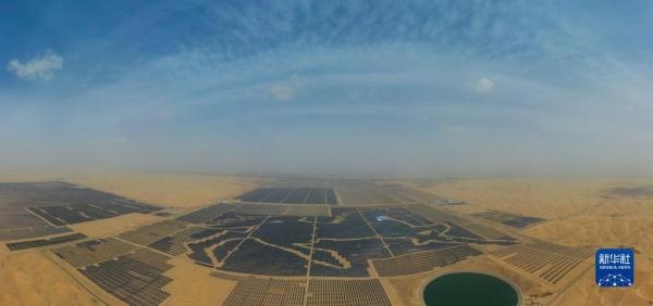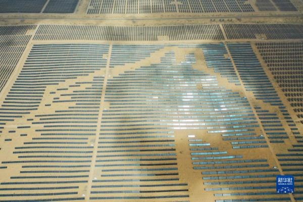 一匹占地130多萬平方米的沙漠“駿馬”橫臥在內(nèi)蒙古自治區(qū)庫布其沙漠之中,這是位于達(dá)拉特光伏發(fā)電應(yīng)用領(lǐng)跑基地中、由近20萬塊光伏板組成的“駿馬電站”。該電站采用“林光互補(bǔ)”模式,板上發(fā)電、板下種植,在開發(fā)利用庫布其沙漠豐富太陽能資源的同時,推動沙漠生態(tài)治理。