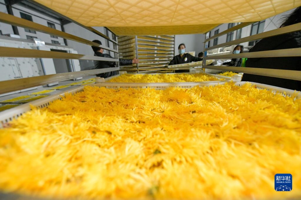 金秋時節(jié),貴州省黔南布依族苗族自治州貴定縣云霧鎮(zhèn)種植的1000余畝菊花陸續(xù)進入采摘期,當?shù)卮迕衩χ烧?、分揀、烘干菊花,供?yīng)市場。