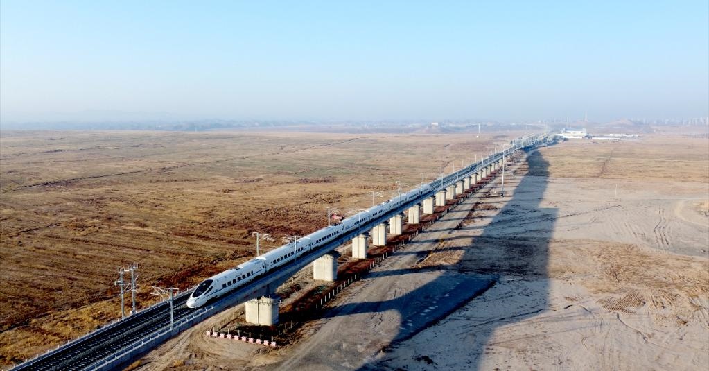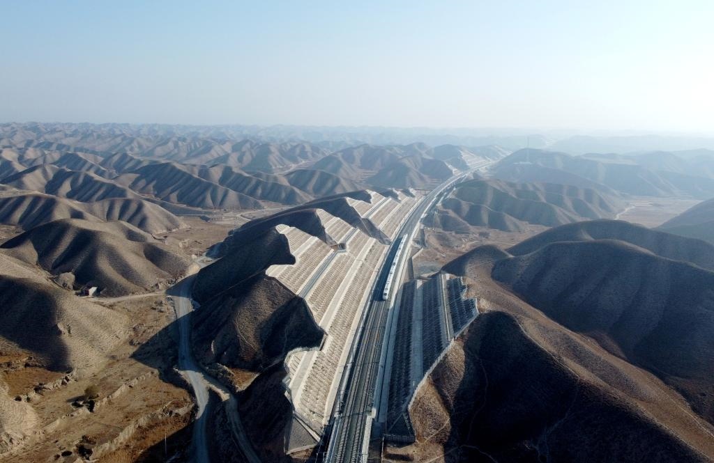 試驗列車在銀蘭高鐵甘肅段內運行。新華社發(fā) 袁暉 攝
